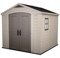 Keter Πλαστική Αποθήκη Κήπου Factor 8x8 με Διπλή Πόρτα & Αεραγωγό 256,5x255x243cm. Η πλαστική αποθήκη κήπου Keter Factor 8x8 είναι η ιδανική λύση για να οργανώσεις και να προστατεύσεις τον εξοπλισμό και τα εργαλεία σου με στυλ και ασφάλεια.