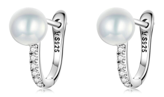 BAMOER σκουλαρίκια κρίκος SCE1288 με κυβική ζιρκόνια & πέρλα ασήμι 925