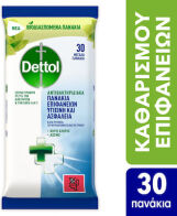 Dettol Μαντηλάκια Καθαρισμού Γενικής Χρήσης με Απολυμαντική Δράση 30 τμχ