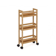 Από ξύλο μπαμπού 3 υφασμάτινες και αφαιρούμενες τσάντες Μασίφ πάτος και λαβές σε κάθε τσάντα 4 τροχοί για εύκολη μετακίνηση Διαστάσεις τσαντών: 19 x 40 cm Πάχος μπαμπού: 15 mm Διαστάσεις: 62 x 40 x 83 cm