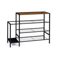 Μεταλλικός ανθεκτικός σκελετός 4 μεταλλικά ράφια για παπούτσια 1 ξύλινο ράφι από μοριοσανίδες Χωρητικότητα: έως 12 ζευγάρια παπούτσια Διαστάσεις: 63 x 30 x 80 cm