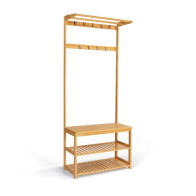 Από ξύλο μπαμπού Υφασμάτινος σάκος 2 χώρων 3 ράφια στο πάνω μέρος Διαστάσεις σάκου: 46 x 26.30 x 60 cm Διαστάσεις: 57 x 35 x 152 cm