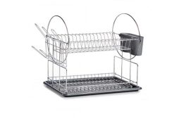 Μεταλλική Διπλή Πιατοθήκη Στεγνωτήριο πιάτων με δίσκο και θήκη για μαχαιροπίρουνα, 50x23.5x33 cm
