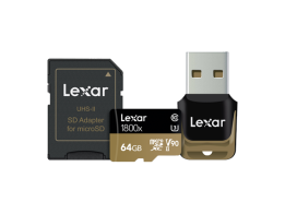 Lexar 64GB Professional 1800x microSDXC™ UHS-II cards (270MB/s) + adapter + reader