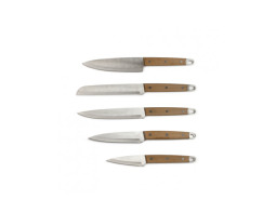 Σετ 5 μαχαιριών Livoo με ξύλινη λαβή. Χαρακτηριστικά 1 μαχαίρι σεφ 20 εκ., 1 μαχαίρι ψωμιού 20 εκ., 1 μαχαίρι σκαλίσματος 20 εκ., 1 μαχαίρι χρησιμότητας 12,5 εκ. Και 1 μαχαίρι καθαρισμού 7.5 εκ. Λεπίδες από ανοξείδωτο ατσάλι Ξύλινες ξύλινες λαβές από οξιά Κρεμαστή τρύπα για τα μαχαίρια Διαστάσεις: 33.50 x 21 x 2.5 cm Εγγύηση: 2 έτη