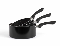 Σετ κατσαρόλες 3 τεμαχίων Livoo MEN125N από ανοξείδωτο ατσάλι και κατάλληλες για όλες τις εστίες. Διαθέτουν αντικολλητικής επίστρωση και είναι συμβατές με όλες τις εστίες. Σετ 3 κατσαρόλες Αντικολλητική επίστρωση Διάμετρος 16, 18 και 20 εκ Ανάμεικτη λαβή σιλικόνης Υλικό κατασκευής: Αλουμίνιο Συμβατό με οποιαδήποτε εστία, συμπεριλαμβανομένου του επαγωγικού μαγειρέματος Δεν χρειάζεται να προσθέσετε λίπος