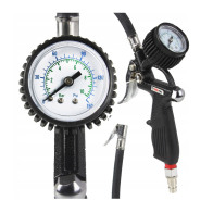 Από ανθεκτικά υλικά Ασφαλή πλήρωση των ελαστικών με αέρα Με έναν τυπικό, γρήγορο, αρσενικό σύνδεσμο 1/4 " Βαλβίδα για την εξαγωγή αέρα (ξεφούσκωμα) Με μανόμετρο ακριβείας Μακρύ, βαρέως τύπου περιστρεφόμενο καλώδιο Εύρος μέτρησης: 0-10 bar
