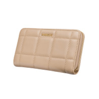 Από υψηλής ποιότητας οικολογικό δέρμα Καπιτονέ σχεδιασμός Κλείνει με φερμουάρ 4 υποδοχές για κάρτες 3 τσέπες για χαρτονομίσματα ή έγγραφα 1 τσέπη με φερμουάρ για κέρματα 2 στενές θήκες για αποδείξεις Διαστάσεις: 19 x 2 x 11 cm