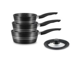 Royalty Line Σετ Κατσαρόλες 3 τεμαχίων με κοινό καπάκι και Αντικολλητική Επίστρωση, RL-FS3M-BLK