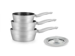 Royalty Line Σετ Κατσαρόλες 3 τεμαχίων με κοινό καπάκι και Αντικολλητική Επίστρωση, RL-FS3M-SLV