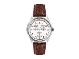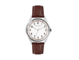 Ted Baker Ανδρικό Ρολόι Χειρός με Λευκό Καντράν και Καφέ Δερμάτινο Λουράκι, BKPDQS104