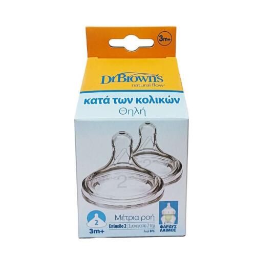 Dr. Brown's Natural Flow Options+ Θηλές από Σιλικόνη Μέτριας Ροής για 3+ μηνών 2τμχ.