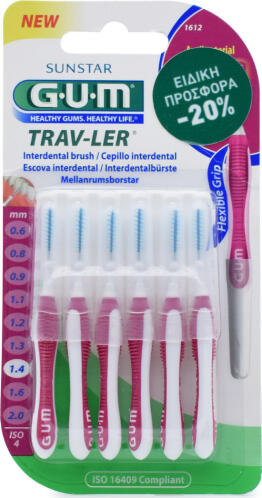 GUM Trav-ler 1612 Μεσοδόντια Βουρτσάκια 1.4mm Κόκκινα 6τμχ