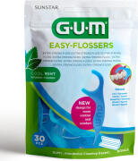 GUM Easy-Flossers Κερωμένο Οδοντικό Νήμα με Γεύση Μέντα και Λαβή σε Μπλε χρώμα 30τμχ