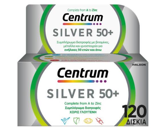 Το Centrum Silver 50+ είναι ένα συμπλήρωμα διατροφής με προσαρμοσμένα επίπεδα βιταμινών, μετάλλων και ιχνοστοιχείων, ώστε να ανταποκρίνεται στις διατροφικές ανάγκες των ενηλίκων 50 ετών και άνω.