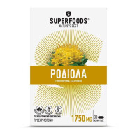 Superfoods Rhodiola 1750mg 30 κάψουλες. Ένα συμπλήρωμα διατροφής που περιέχει 250mg εκχύλισμα ρίζας Rhodiola rosea με διασφαλισμένη περιεκτικότητα σε Ροζαβίνη 10mg και Σαλιδροσίνη 5mg ανά κάψουλα.