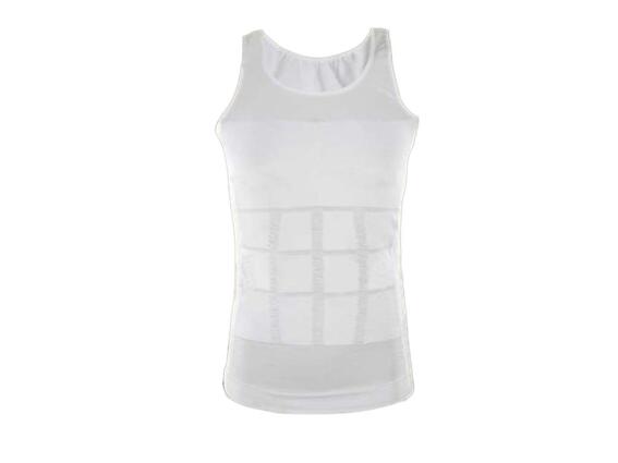 Ανδρική Φανέλα Lastex Σύσφιξης Κοιλιάς και Αδυνατίσματος σε λευκό χρώμα, Slimming t-shirt Η ανδρική φανέλα σύσφιξης και αδυνατίσματος είναι τέλεια σχεδιασμένη ώστε να φτάνει μέχρι ψηλά και να αναδεικνύει και το στήθος ενώ στην κοιλιά υπάρχει ειδική ενίσχυση για να τη συγκρατεί και να την κάνει επίπεδη. Το διορθωτικό ανδρικό μπλουζάκι διαμορφώνει τέλεια τη σιλουέτα, συνιστάται για προβλήματα πλάτης, σχηματοποιήσης κοιλιακών, ιδανικό κάτω από εφαρμοστά ρούχα. Χαρακτηριστικά: Κατασκευασμένο από υλικά υψηλής ποιότητας Δυνατό αδυνάτισμα - ιδανικό για όσους έχουν κοιλιά Χρησιμοποιείται για προβλήματα πλάτης, κήλη, γυναικομαστία Εξαιρετικό για τη διόρθωση των γραμμών της κοιλιάς, των ώμων και του στήθους έως και 2-3 μεγέθη Αν δεν χωράς πλέον στα ρούχα σου - μην ανησυχείς - από εδώ και πέρα κανείς δεν χρειάζεται να ξέρει ότι έχεις πάρει μερικά εκατοστά στη μέση σου! Αναπνέει, δεν τσαλακώνει, πρακτικά αόρατο κάτω από τα ρούχα Μη πιεστικό, με ειδικές επίπεδες ραφές Υλικό: 80% νάιλον, 20% ελαστάν Χρώμα: λευκό Μέγεθος μπλουζάκι μετρημένο επίπεδο χωρίς τέντωμα, +/- 2cm