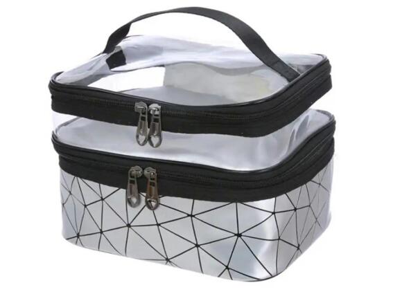 Νεσεσέρ Τσάντα Καλλυντικών Ταξιδιού για Μεταφορά Μικροαντικειμένων σε Ασημί χρώμα, 22x14.5x16.5 cm Εξαιρετικά πρακτική τσάντα καλλυντικών ταξιδιού. Εξοπλισμένο με πολλά διαμερίσματα διαφόρων μεγεθών και σκοπών. Οι πρόσθετες τσέπες και οι θήκες θα διευκολύνουν την απόκρυψη μιας τεράστιας ποσότητας καλλυντικών. Η θήκη είναι κατασκευασμένη από συμπαγές υλικό που προστατεύει το περιεχόμενο από τυχαία ζημιά. Η θήκη διαθέτει φερμουάρ, διαφανές καπάκι και λαβή για εύκολη μεταφορά. Χαρακτηριστικά προϊόντος: Υλικό: Πολυεστέρας Χρώμα: Ασημί Φερμουάρ Λαβή μεταφοράς Διαφανές καπάκι Πρόσθετη τσέπη για βούρτσες Διαστάσεις (εξωτερικές): 22 cm x 14.5 cm x 16.5 cm