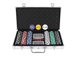 Σετ Βαλίτσα Αλουμινίου με 300 μάρκες Πόκερ, 2 τράπουλες και ζάρια, 39x27x7 cm