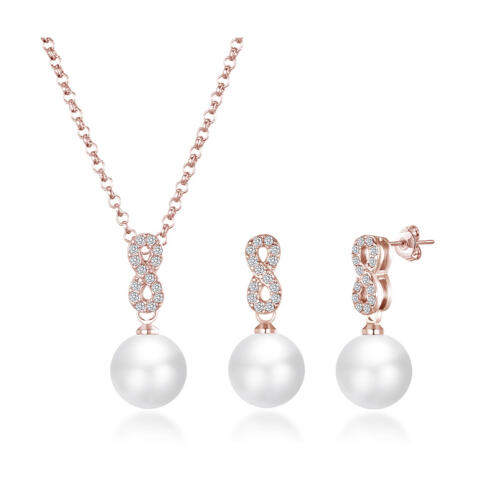 Philip Jones Σετ Κοσμημάτων Infinity Philip Jones Χρώματος Ροζ - Χρυσό με Πέρλες και Κρύσταλλα Swarovski® 1