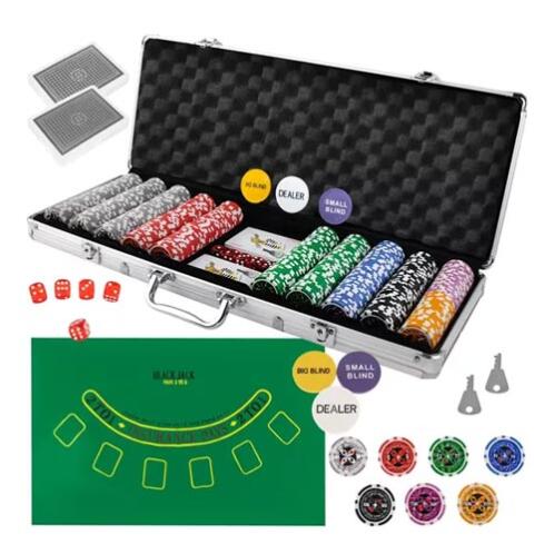 Το σετ περιλαμβάνει: Βαλίτσα, 2 κλειδιά, 2 τράπουλες των 54 φύλλων η καθεμία, 1 Dealer, 1 Μάρκα Small Blind, 1 Μάρκα Big Blind, 5 ζάρια, 150 γκρι μάρκες, 100 κόκκινες μάρκες, 100 πράσινες μάρκες, 50 μπλε μάρκες, 50 μαύρες μάρκες, 25 κίτρινες μάρκες, 25 μωβ μάρκες, Πράσινο πανί παιχνιδιού.