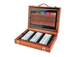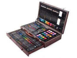 Σετ Ζωγραφικής 128 τεμαχίων σε ξύλινη βαλίτσα μεταφοράς, 38x8x23.5 cm