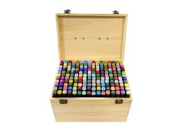 Σετ Μαρκαδόροι Ζωγραφικής 176 Τεμαχίων, με Διπλή Μύτη και Ξύλινη Θήκη, 19.5x27.5x17 cm