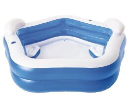 Χαρίστε στα παιδιά ατελείωτο δροσερό παιχνίδι μέσα στη ζέστη του καλοκαιριού. Η πισίνα της Intex είναι η ιδανική επιλογή για οικογένειες που αναζητούν μια γρήγορη και εύκολη επιλογή πισίνας για την αυλή ή το μπαλκόνι τους. Το μοναδικό σχήμα επιτρέπει τον μέγιστο χώρο παιχνιδιού και τα φαρδιά πλαϊνά τοιχώματα δίνουν επιπλέον άνεση και σταθερότητα. Τα τέσσερα ενσωματωμένα καθίσματα με πλάτη είναι ιδανικά για χαλάρωση και χαλάρωση με άνεση. Παρέχονται δύο θήκες ποτών για να κρατάτε τα δροσιστικά ποτά σας ενώ χαλαρώνετε.    Πάντα αποθηκεύετε την πισίνα σε ξηρό και δροσερό μέρος μετά τη χρήση της. Μην την αποθηκεύετε σε μέρη με υψηλή θερμοκρασία ή ακατάλληλες συνθήκες αποθήκευσης.   Xαρακτηριστικά Χρώμα: Μπλε/Λευκό Υλικό: Πολυβινύλιο PVC Χωρητικότητα (80% της πισίνας): 990lt Κατάλληλο για ηλικίες από 3 ετών και πάνω Περιλαμβάνονται υλικά επιδιόρθωσης Δύο αεροθάλαμοι Με βαλβίδα αποστράγγισης Με 4 ενσωματωμένες θέσεις με πλάτη Με 2 θέσεις για ποτήρια Διαστάσεις εξωτερικά Mήκος: 229cm Πλάτος: 229cm Ύψος: 66cm Διαστάσεις εσωτερικά Mήκος: 178cm Πλάτος: 178cm Ύψος: 66cm Bάρος: 5.28kg
