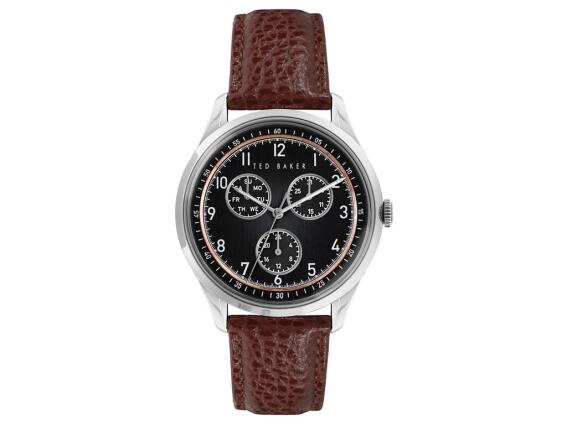 Ted Baker Ανδρικό Ρολόι Χειρός με Μαύρο Καντράν και Καφέ Δερμάτινο Λουράκι, BKPDQS108
