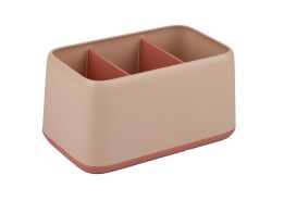 Πλαστικός Οργανωτής γραφείου 3 θέσεων, μολυβοθήκη, 15x9.8x8cm Ροζ
