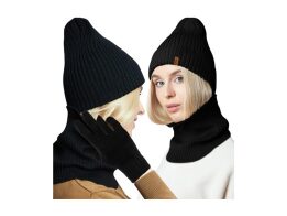 Σετ με σκουφάκι, κασκόλ και γάντια, σε μαύρο χρώμα, unisex, 21x2x24 cm