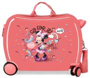 Δώστε χαρά στη μικρή σας με την πρώτη της βαλίτσα Minnie από τη συλλογή Loving Life με τα υπέροχα χρώματα! Αυτή η βαλίτσα μπαίνει άνετα στην καμπίνα του αεροπλάνου και είναι φτιαγμένη και για παιχνίδι, αφού το παιδί μπορεί να ανέβει πάνω για να παίξει. Είναι κατασκευασμένη από ABS και διαθέτει 4 ρόδες που πηγαίνουν προς κάθε κατεύθυνση.