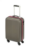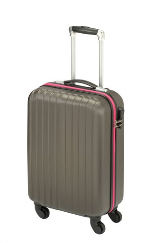 Σκληρή βαλίτσα με 4 ρόδες σε χρώμα ανθρακί και ροζ φερμουάρ.