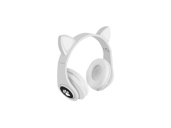 Παιδικά ασύρματα αναδιπλούμενα ακουστικά γάτας σε λευκό χρώμα, 8x19.5x18 cm