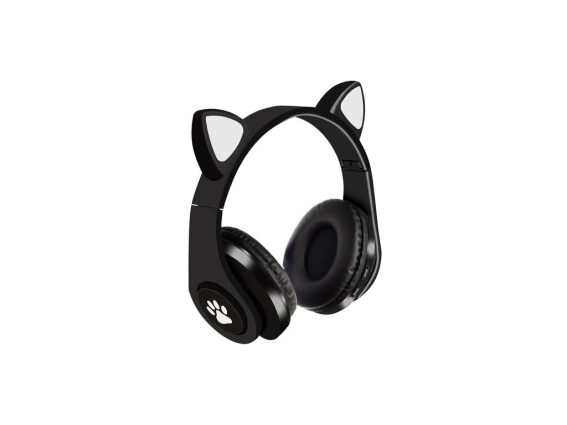 Παιδικά ασύρματα αναδιπλούμενα ακουστικά γάτας σε μαύρο χρώμα, 8x19.5x18 cm