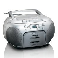 Φορητό ραδιόφωνο με CD, κασέτα και οθόνη LCD, σε ασημί χρώμα.