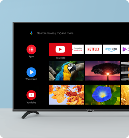 Η Tesla TV διαθέτει, με επίσημη αδειοδότηση, ενσωματωμένα τα Netflix, Prime Video και YouTube, πλήρως υποστηριζόμενα από την Google. Επίσης, μπορείς να επιλέξεις όσες εφαρμογές θέλεις μέσα από περισσότερες από 4000 διαθέσιμες στο Google Play Store.