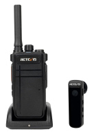 Φωτιζόμενη LCD οθόνη. Εμβέλεια 10 χλμ*. Επαναφορτιζόμενες μπαταρίες Νικελίου 800 mAh. Λειτουργεί και με 3 x AA. Φόρτιση από USB. Σύζευξη με ένα κουμπί. 8 κανάλια / 121 κωδικοί. Δυνατότητα απλού και διπλού σκαναρίσματος καναλιών. Κλείδωμα πληκτρολογίου. 20 τόνοι κλήσης. Τόνος επιβεβαίωσης ομιλίας / ήχος λήξης. Λειτουργία Vox. Χρονόμετρο. Λειτουργία ελέγχου χώρου. Ένδειξη επιπέδου μπαταρίας. Αυτόματη απενεργοποίηση. Διάρκεια μπαταριών: 18 ώρες (υπό φυσιολογική χρήση). Υποδοχή ακουστικών 2.5 mm. Λειτουργία εξοικονόμησης ενέργειας. 16 αυτοκόλητα. Φακός LED. Ανθεκτικό στο νερό με πιστοποίηση IPx4. Διαστάσεις: 18.1 x 5.7 x 3.3 cm. Βάρος 195 γρ.. Περιλαμβάνονται κλιπ ζώνης, φορτιστής, 2 καλώδια φόρτισης USB, ακουστικά, θήκη μεταφοράς και 2 λουριά για να τα κρεμάτε