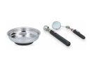 Κinzo Σετ εργαλείων με μαγνήτη 3 τεμαχίων, 15x3x20 cm Αυτό το πρακτικό σετ συνδυασμού μαγνητικού δίσκου συγκρατεί μικρά μεταλλικά μέρη όπως βίδες και παξιμάδια και ταυτόχρονα τα συγκρατεί μαγνητικά. Αυτό σημαίνει ότι τα μικρά εξαρτήματα είναι πάντα σε κοντινή απόσταση! Χάρη στον επικαλυμμένο με καουτσούκ μαγνήτη στο κάτω μέρος, το κέλυφος κολλάει σε οποιαδήποτε μεταλλική επιφάνεια, όπως το σώμα του αυτοκινήτου. Χαρακτηριστικά : Διαστάσεις μαγνητικής πλάκας: 10,5 cm Μέγιστο μήκος μαγνήτη: περίπου 89 cm Μέγιστο μήκος καθρέφτη: περίπου 48 cm Υλικό: Μέταλλο Χρώμα: Ασημί Απαιτείται συναρμολόγηση: Όχι Μαγνητική βάση Τηλεσκοπικές λαβές Σετ αποτελούμενο από 3 τεμάχια Χρήσιμο για τη συλλογή και ομαδοποίηση μικρών εξαρτημάτων, χαμένα μικρά κομμάτια που προσγειώνονται πίσω από έπιπλα κ.λπ.