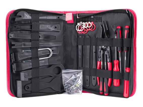 Σετ Αφαίρεσης Ταπετσαρίας, Κλιπς Αυτοκινήτου 43 τεμαχίων, σε κασετίνα μεταφοράς, RTSDT0012 RTSDT0012 Περιλαμβάνει όλα όσα χρειάζεστε για να αφαιρέσετε και να αποσυναρμολογήσετε διακοσμητικά πλαστικά, ταπετσαρίες, πλαστικά κλιπς, καλύμματα αυτοκινήτου, πάνελ θυρών, ηχεία, radio - cd playerσ, οθόνες, ταμπλό και άλλα. Τα εργαλεία που περιλαμβάνονται είναι κατασκευασμένα από υλικά υψηλής ποιότητας, δεν αφήνουν γρατζουνιές και σημάδια στην ταπετσαρία, η οποία επηρεάζει την αισθητική του εσωτερικού του αυτοκινήτου. Το σετ περιλαμβάνει: Αφαίρεση πάνελ με γωνία κλιπ Αφαίρεση πάνελ επίπεδης κλιπ Αφαίρεση πάνελ με κλιπ (αφαίρεση πάνελ δοντιών) Αφαίρεση κλιπ ταπετσαρίας (αφαίρεση ταπετσαρίας) Αφαίρεση στενού τύπου Τύπος έλξης αφαίρεσης Remover Wide Type Handy Remover (εξαγωγέας διπλής όψης) Αφαίρεση πάνελ (βασικό εργαλείο αφαίρεσης πάνελ) Straight Panel Remover (ευθεία αφαίρεση πάνελ) Sharp Panel Remover (Sharp Panel Remover) Σπάτουλα κραυγής Διαστολέας ελατηρίου Μακρύς μοχλός ταπετσαρίας Κοντός μοχλός ταπετσαρίας Σουβλάκι Αδιάκριτος γάντζος 45 μοιρών Αδιάκριτος γάντζος 90 μοιρών Γάντζος 135 μοιρών Σετ ραδιοεξαγωγέα (22 τεμ.)