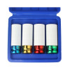 Τα καρυδάκια από την εταιρεία BJC είναι κατασκευασμένα από ατσάλι CrV για μεγαλύτερη αντοχή και αξιοπιστία. Είναι κατάλληλες για το ασφαλές ξεβίδωμα ζαντών αλουμινίου και διαθέτουν ειδικό κάλυμμα για την προστασία της ζάντας από γρατζουνιές και ζημιές. Κάθε καρυδάκι έχει διαφορετικό χρώμα στη βάση του, για εύκολη αναγνώριση του μεγέθους. Συνοδεύονται από βαλιτσάκι μεταφοράς και αποθήκευσης. Η συσκευασία περιλαμβάνει: Καρυδάκι 17 mm, χρώμα μπλε Καρυδάκι 19 mm, χρώμα χρυσό  Καρυδάκι 21 mm, χρώμα κόκκινο Καρυδάκι 22 mm, χρώμα πράσινο Χαρακτηριστικά: Κατασκευασμένα από ατσάλι CrV Μεγάλη αντοχή και αξιοπιστία Για ζάντες αλουμινίου Με ειδικό προστατευτικό κάλυμμα Διαφορετικό χρώμα / μέγεθος Με βαλιτσάκι αποθήκευσης Κατάλληλα για πνευματικά εργαλεία 1/2 " Βάρος: 1 Kg Το προϊόν εισάγεται και διατίθεται από την SPM Network.