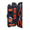 Το σετ, από την εταιρία Kraft&Dele, αποτελείται από 129 διαφορετικά εργαλεία, κατασκευασμένα από σκληρυμένο χάλυβα χρωμίου βαναδίου (CrV). Το χρώμιο εγγυάται την αντοχή του χάλυβα στη διάβρωση, την οξείδωση, την τριβή και την υψηλή αντοχή σε υψηλές θερμοκρασίες. Η προσθήκη βαναδίου αναστέλλει την ανάπτυξη των κόκκων κατά την επεξεργασία, ενώ αυξάνει την ολκιμότητα τόσο της σβησμένης όσο και της σκληρυμένης μορφής. Μια βαλίτσα από ανθεκτικό πλαστικό σας επιτρέπει να διατηρείτε την τάξη και την εύκολη μεταφορά των εργαλείων. Κάθε εργαλείο έχει μια καθορισμένη θέση όπου είναι εύκολο να βρείτε το απαιτούμενο μέγεθος κλειδιού. Η συσκευασία περιλαμβάνει: 1 πένσα μύτης μήκους 165 mm 1 κλειδί μήκους 150 mm 1 διαγώνιος πένσα μήκους 165mm 1 αλφάδι 9" 1 σφυρί 8 εξαγωνικά κλειδιά SAE 8 κλειδιά Allen 1 χαρτοκόπτη 1 μέτρο από ατσάλι 3.5 m 4 κατσαβίδια ακριβείας 1 εργαλείο πτύχωσης 20 μύτες κατσαβιδιού 1 λαβή κατσαβιδιού με καστάνια 80 διαφορετικοί συνδετήρες Χαρακτηριστικά: Από υψηλής ποιότητας ατσάλι χρωμίου-βαναδίου Ανθεκτικά στις χρήσεις Βαλιτσάκι αποθήκευσης & μεταφοράς Σετ 129 τμχ. Το προϊόν εισάγεται και διατίθεται από την SPM Network.