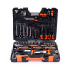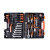 Το σετ, από την εταιρία Kraft&Dele, αποτελείται από 89 διαφορετικά εργαλεία, κατασκευασμένα από σκληρυμένο χάλυβα χρωμίου βαναδίου (CrV). Το χρώμιο εγγυάται την αντοχή του χάλυβα στη διάβρωση, την οξείδωση, την τριβή και την υψηλή αντοχή σε υψηλές θερμοκρασίες. Η προσθήκη βαναδίου αναστέλλει την ανάπτυξη των κόκκων κατά την επεξεργασία, ενώ αυξάνει την ολκιμότητα τόσο της σβησμένης όσο και της σκληρυμένης μορφής. Μια βαλίτσα από ανθεκτικό πλαστικό σας επιτρέπει να διατηρείτε την τάξη και την εύκολη μεταφορά των εργαλείων. Κάθε εργαλείο έχει μια καθορισμένη θέση όπου είναι εύκολο να βρείτε το απαιτούμενο μέγεθος κλειδιού. Η συσκευασία περιλαμβάνει: 13 pcs. 1/4" sockets: 4, 4.5, 5, 5.5, 6, 6.5.7, 8, 9, 10, 11, 12, 13 mm 9 pcs. 1/2" bar sockets: 14,15,16,17,19,21,22,24,27 1 pc. 1/4" Dr. Extension cord: 3" 1 pc. 1/2" Dr. Extension cord: 5" 1 pcs. 1/2" Dr. Spark Plug Socket: 21 mm 2 pcs. Flipper ratchet handle: 1/4" Dr. and 1/2" Dr. 8 pcs. Combination wrench: 8,10,12,13,14,15,17,19 mm 7 pcs. Screwdriver: (-) 6x150, (-) (+) 6x100, 5x75, 6x38 mm 9 pcs Allen wrench: 1.5-2-2.5-3-4-5-6-8-10 mm with holder Pliers oblique 1 pc. 6" 1 pc. 6" pliers 1 pc. Long nose pliers 6" 1 pc. kinfe 1 pc. Saw 1 pc. Hammer 300g 1pc. measuring tape: 5M / 16ft 20 pcs. bits / holder: (+) 0-1-2-3, (-) 2-3-4-5-6-7. (*) 0-1-2-3, (T) 10-15-20-25-30-40 1 pc. Driver's handle 10 pcs. of knife blades with case 1 pc. BMC Χαρακτηριστικά: Από υψηλής ποιότητας ατσάλι χρωμίου-βαναδίου Ανθεκτικά στις χρήσεις Για οικιακή & επαγγελματική χρήση Βαλιτσάκι αποθήκευσης & μεταφοράς Σετ 89 τμχ. Το προϊόν εισάγεται και διατίθεται από την SPM Network.