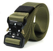 Ζώνη στρατιωτικού τύπου TMV-0059, ρυθμιζόμενη, 3.8x160cm, χακί Ζώνη στρατιωτικού τύπου, εξαιρετικής αντοχής με μεταλλική πόρπη ταχείας απασφάλισης. Είναι κατασκευασμένη από υλικά υψηλής αντοχής, για τακτική χρήση και το μήκος της είναι ρυθμιζόμενο, με μέγιστο άνοιγμα έως 160cm και πλάτος ιμάντα 3.8cm.