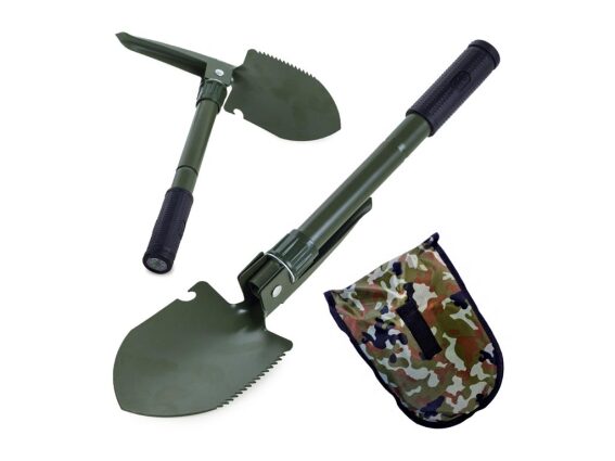 Πτυσσόμενο Φτυάρι πολλαπλών χρήσεων με Κάλυμμα σε σκούρο πράσινο χρώμα, Μήκους 41.5 cm Foldable shovel Αυτό το εργαλείο φρεζαρίσματος από μέταλλο είναι εξαιρετικά εύκολο στη χρήση. Είναι αναντικατάστατο στο σπίτι, στο αυτοκίνητο, στον κήπο, κατά τη διάρκεια πεζοπορίας ή κηπουρικής. Χάρη στο μικρό μέγεθος μετά την αναδίπλωση μπορεί εύκολα να χωρέσει σε ένα σακίδιο, τσάντα, διοργανωτής κλπ. Μπορεί α χρησιμοποιηθεί ως φτυάρι, αξίνα ή πριόνι. Περιλαμβάνει ένα κάλυμμα σε χρώμα παραλλαγής το οποίο σας προστετεύει από τυχόν ατυχήματα και σας προφυλλάσει από τη βρωμια κατά τη μεταφορά του. Είναι επίσης χρήσιμο κατά τη διάρκεια εκδρομών σε ασκήσεις επιβίωσης. Χαρακτηριστικά προϊόντος: Υλικό: Μέταλλο Χρώμα: Σκούρο πράσινο Ελαφρύ Ανθεκτικό Μήκος ξεδιπλωμένου φτυαριού: 41.5 cm Μήκος διπλωμένου φτυαριού: 16 cm Πλάτος φτυαριού: 9.6 cm