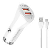 LDNIO φορτιστής αυτοκινήτου C511Q με καλώδιο, 2x USB, 36W, λευκός Υψηλής απόδοσης USB φορτιστής αυτοκινήτου της LDNIO, κατασκευασμένος από ανθεκτικό υλικό και συμβατός με όλες τις συσκευές που φορτίζουν μέσω USB θύρας. Διαθέτει 2 θύρες εξόδου USB, για ταυτόχρονη φόρτιση 2 συσκευών, με μέγιστη απόδοση 36W. Στην συσκευασία συμπεριλαμβάνεται καλώδιο φόρτισης USB σε USB-C -2 θύρες εξόδου USB με μέγιστη απόδοση 36W -υποστήριξη γρήγορης φόρτισης QC3.0 -κομψός & μικρός σε μέγεθος -προστασία βραχυκυκλώματος, υπέρτασης, υπερθέρμανσης κ.α. Τεχνικά χαρακτηριστικά Είσοδος: DC 12-24V Έξοδος: 3.6-6V/3A, 6-9V/2A, 9-12V/1.5A Συνολική έξοδος: 36W Max Διαστάσεις: 2.7 x 6.7cm Μήκος καλωδίου: 1m Χρώμα: Λευκός Περιεχόμενα συσκευασίας Φορτιστής τοίχου Καλώδιο φόρτισης USB σε USB-C