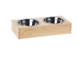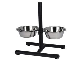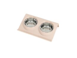 2 αφαιρούμενα μπολ από ανοξείδωτο ατσάλι 1 βάση από αντιολισθητική σιλικόνη Χωρητικότητα / μπολ: 800 ml Περιλαμβάνεται σέσουλα φαγητού Διαστάσεις / μπολ: 14 x 7 cm Διαστάσεις βάσης: 47 x 28 x 7 cm