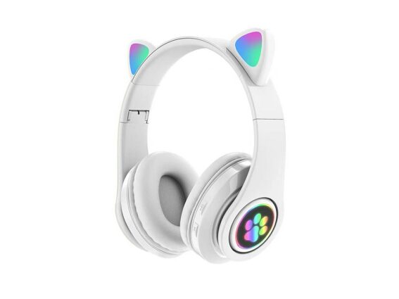 Ασύρματα Ακουστικά Κεφαλής Τύπου αυτιά γάτας Bluetooth v.5.0 με μικρόφωνο, σε λευκό χρώμα Headphones Τα ασύρματα στερεοφωνικά ακουστικά με τα οποία μπορείτε να ακούσετε μουσική ή να πραγματοποιήσετε κλήσεις στο smartphone σας. Με αυτά τα ακουστικά η εναλλαγή μεταξύ κλήσης και ακρόασης μουσικής είναι πανεύκολη και χάρη σε αυτό, δεν θα χάσετε ποτέ κάποια εισερχόμενη κλήση καθώς ακούτε μουσική. Χαρακτηριστικά προϊόντος: Τροφοδοτικό (ακουστικά): ενσωματωμένη μπαταρία 400mAh Επικοινωνία: Bluetooth 5.0 με EDR Οπίσθιος φωτισμός LED RGB (μπορεί να απενεργοποιηθεί) Εμβέλεια: έως 10 μέτρα Ενσωματωμένο μικρόφωνο Θύρα mini jack 3,5 mm Αναγνώστης καρτών μνήμης MicroSD Αναπαραγωγή MP3 Ενσωματωμένο ραδιόφωνο FM (87,5 MHz - 108 MHz) Απόκριση συχνότητας ήχου: 50 Hz έως 20 kHz Ευαισθησία: 108 dB Αντίσταση: 16 ohms Χρόνος αναμονής: έως 14 ώρες Χρόνος φόρτισης: περίπου 1-2 ώρες Χρόνος εργασίας: έως 6 ώρες Καλώδιο USB για φόρτιση της μπαταρίας άσπρο χρώμα