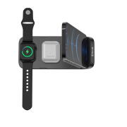 Η βάση 3-σε-1 επιτρέπει την ταυτόχρονη ταχεία φόρτιση ενός smartphone, ασύρματων ακουστικών True Wireless (π.χ. Airpods) και ενός Apple Watch.