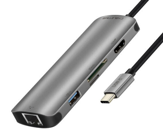 CABLETIME docking station CT-CMHD61L, 6 θυρών, USB-C σύνδεση, 4K, 100W, γκρι Το CT-CMHD61L είναι ένα docking station 6 θυρών για την σύνδεση των περιφερειακών του υπολογιστή σας. Μέσω της θύρας USB-C PD μπορείτε να φορτίσετε το laptop σας με απόδοση έως 100W ενώ μέσω της θύρας HDMI σας επιτρέπει την σύνδεση οθόνης με ανάλυση έως 4K. Επιπλέον, εξοπλίζεται με θύρα RJ45 για ενσύρματη σύνδεση στο δίκτυο με ταχύτητες έως 1000Mbps. Είναι εξαιρετικά προσεγμένο σχεδιαστικά και καταλαμβάνει ελάχιστο χώρο για την εύκολη μεταφορά του. Σημεία ενδιαφέροντος προϊόντος -θύρα USB-C PD με απόδοση φόρτισης έως 100W -σύνδεση οθόνης με ανάλυση έως 4K -θύρα για ενσύρματη σύνδεση δικτύου -μεταφορά δεδομένων έως 5Gbps -με card reader -ανθεκτικό μεταλλικό σώμα με κομψό design Θύρες: -1x USB 3.0 -1x USB-C PD -1x HDMI -1x RJ45 -1x SD -1x micro SD Σημείωση: Για την φόρτιση του laptop μέσω της θύρας USB-C PD απαιτείται τροφοδοσία από φορτιστή τοίχου 100W (δεν συμπεριλαμβάνεται στην συσκευασία). Τεχνικά χαρακτηριστικά -σύνδεση: USB-C -ρυθμός μεταφοράς δεδομένων: έως 5Gbps -ανάλυση: 4K/30Hz -απόδοση φόρτισης: 20V/5A, 100W Max -ταχύτητα δικτύου: 10/100/1000Mbps -υλικό: αλουμίνιο -μήκος καλωδίου: 12cm -διαστάσεις: 4.3 x 11.5 x 1.5cm -χρώμα: γκρι